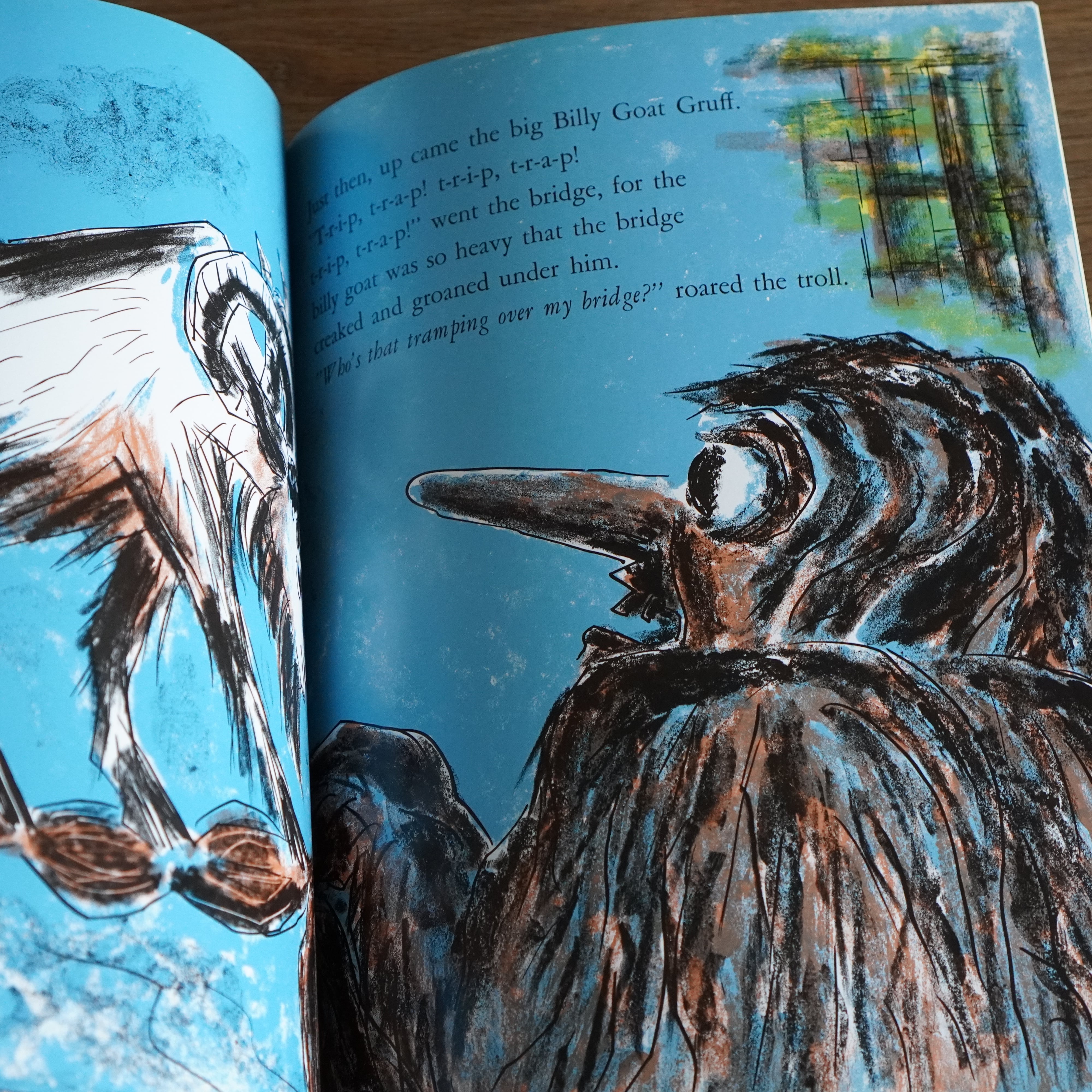 大きさの違う3匹のやぎが太るために山へ向いますが、途中で渡る橋の下には、気味の悪い大きな妖精「トロル」が住んでいて…。3匹は無事たどりつけるのでしょうか。